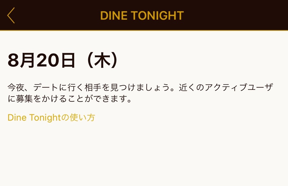 ”Dine Tonight"という機能が存在しますが、こちらではその日の夜に会える人を募集できます。