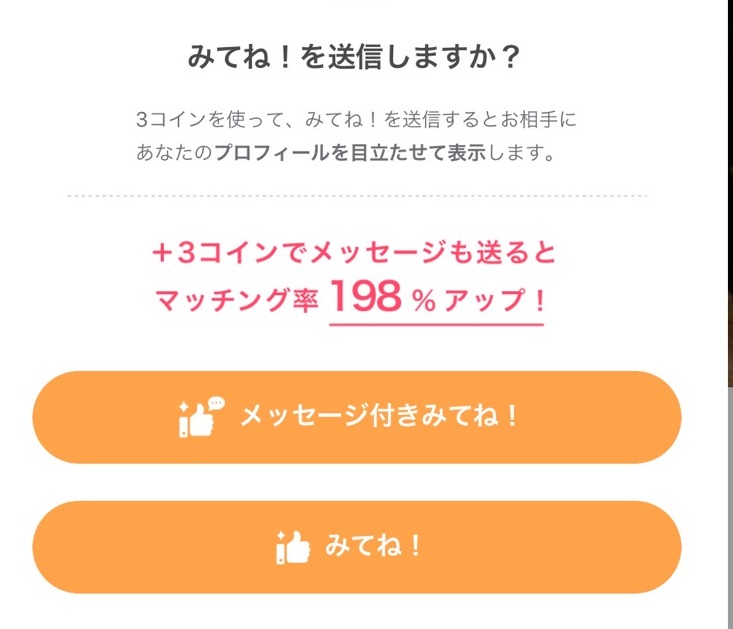 そう感じる相手に出会えず、他の方法を模索している時に、いいねの他に”みてね”というものを初めて送りました。