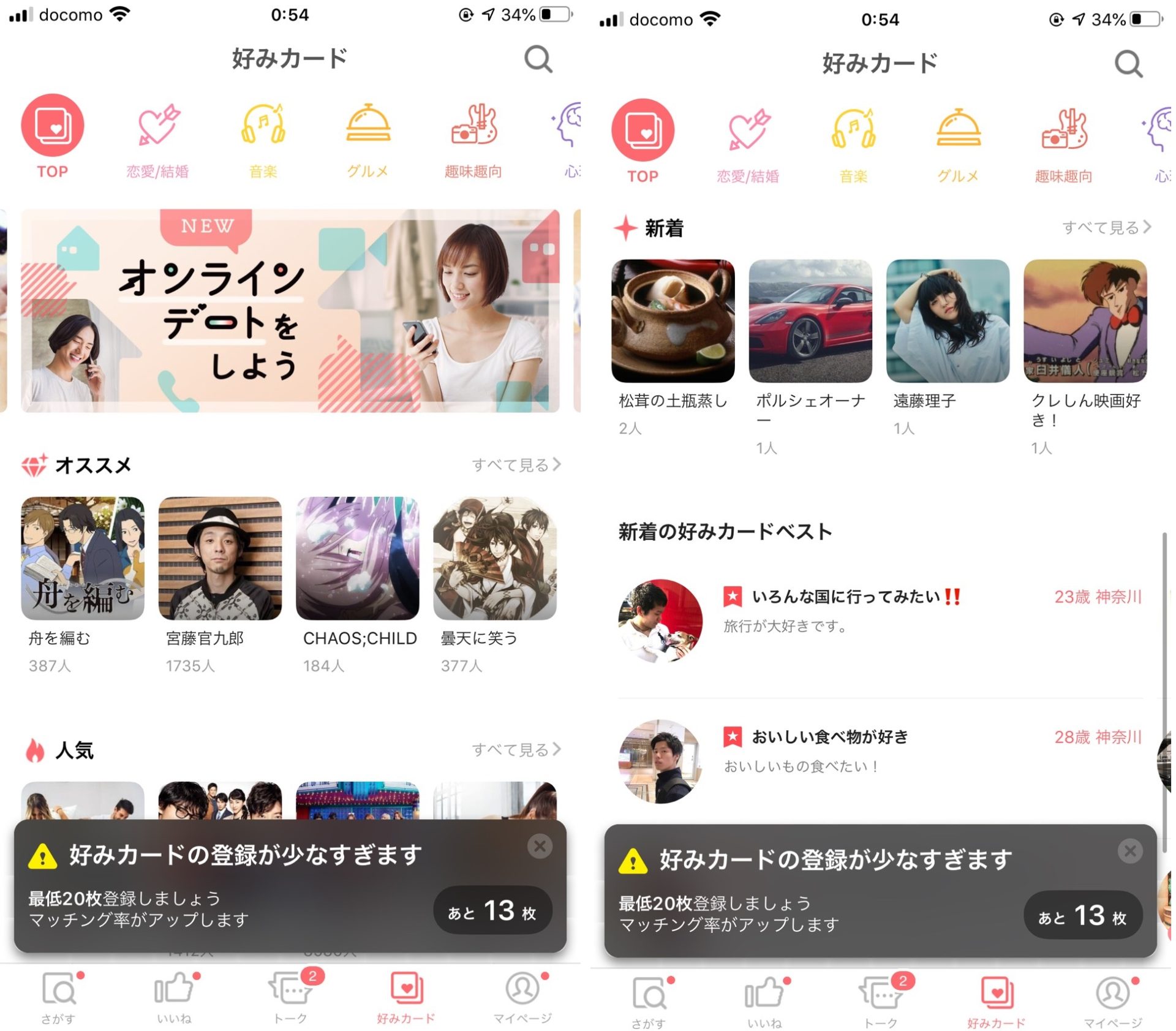 好みカードは、気が合う人と出会える機能でもありますが、あなた自身のアピールにもつながります。