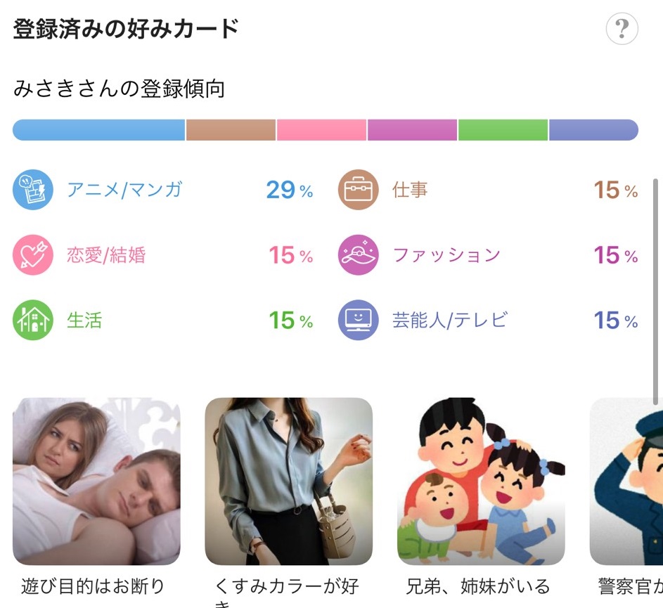 自己紹介文では、どうしてもあなたの良さのすべてを出すことは難しいので、好みカードでアピールするのもありです◎