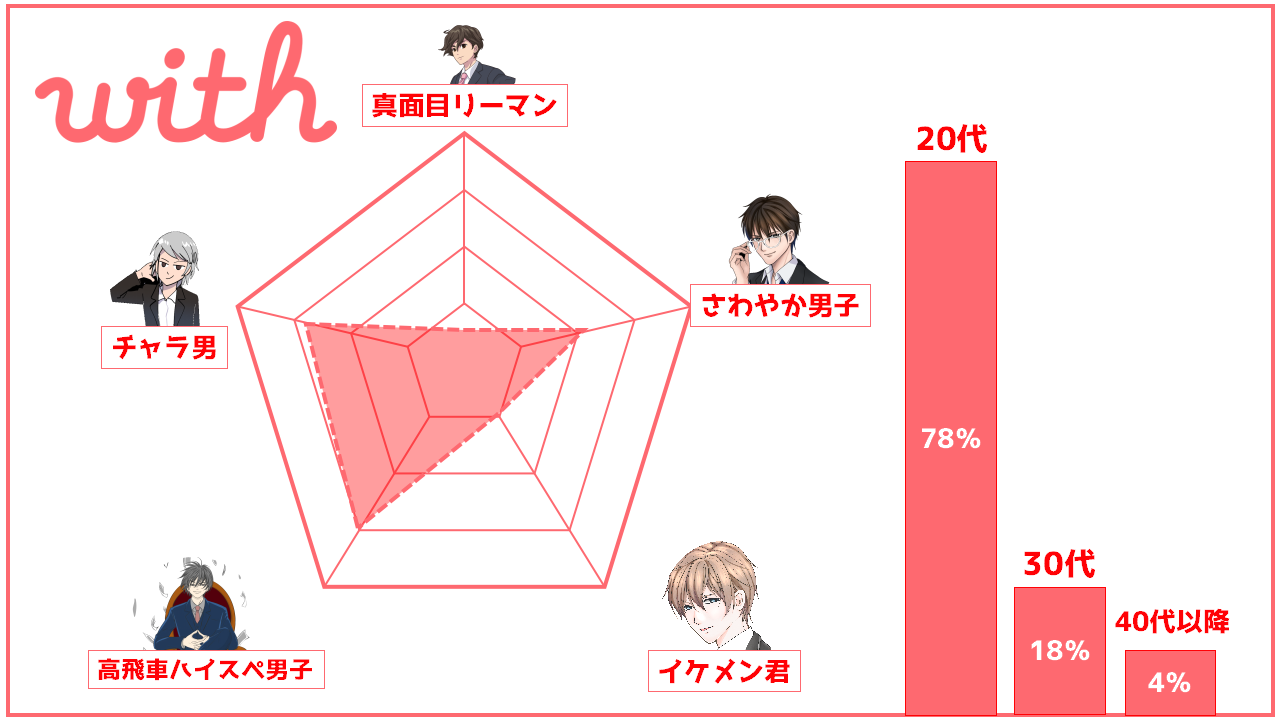 withは年齢層が若いこともあって、若干遊び目的の男性が多い印象です。