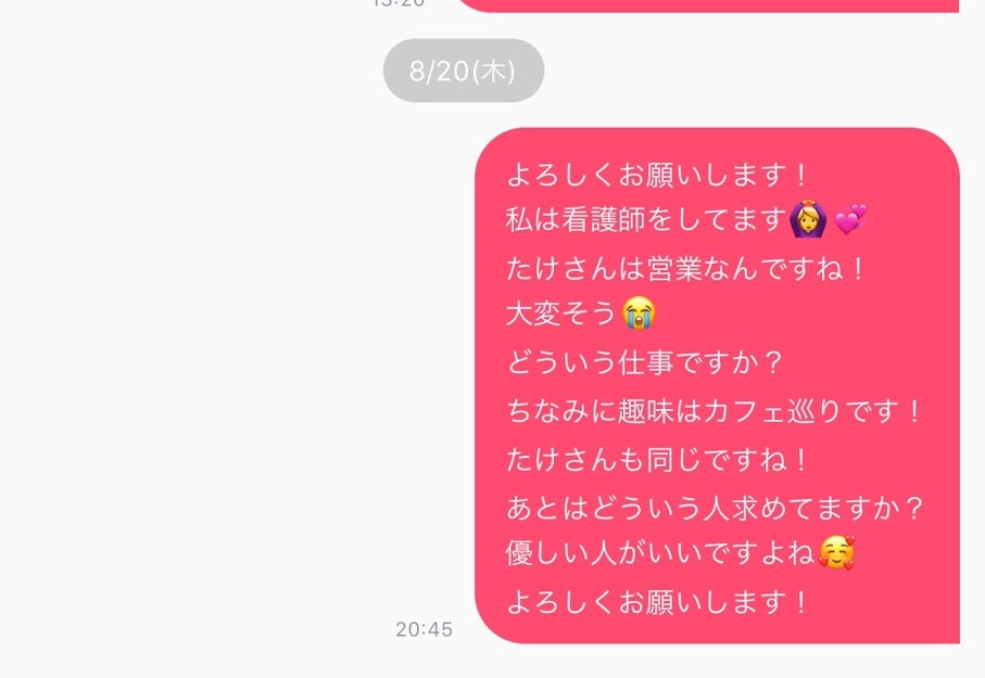 それを避ける意味でも、ファーストメッセージの段階からしっかり気をつけておくと、返信率もアップしますよ。