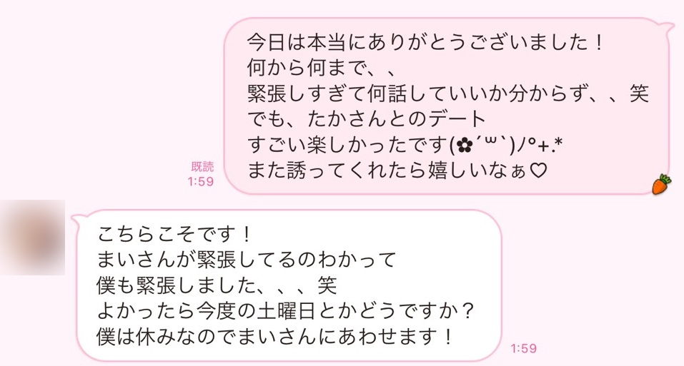 そして、無事会う約束をすることができて、初デートへとたどり着きました。