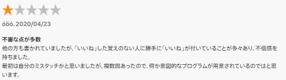 この方は、自分の意思で「いいね!」していない女性とマッチングしたことに不信感を覚えたようですね。