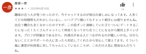 実際に付き合ったという声もあったので、まさに出会えるアプリとして紹介できそうです♪
