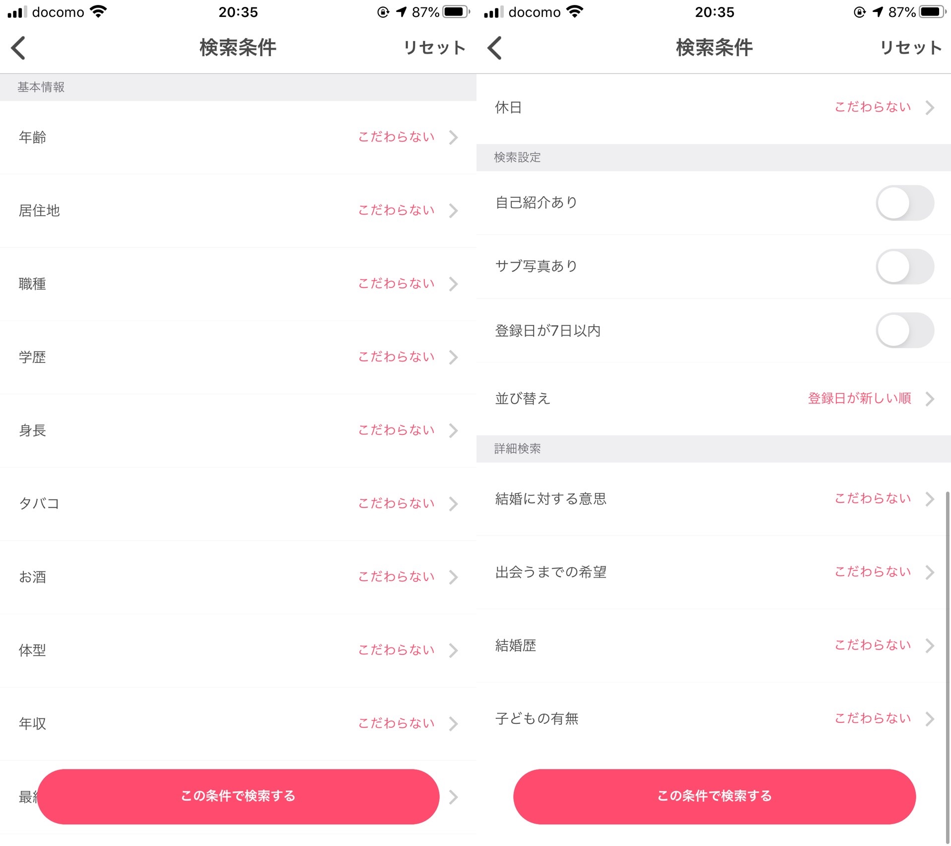 私の場合は、最低限の条件を設けて検索していましたが、これは人によって異なると思います。