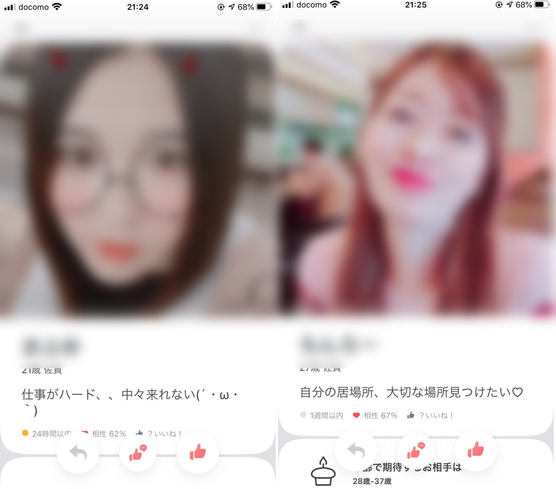 また、人によっては”マッチングしたら見せます”という人もいますが、男性からするといいねしようとは思いません。